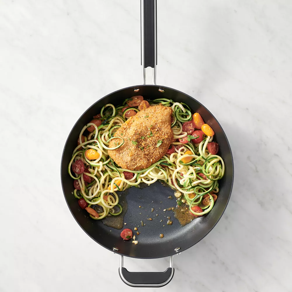 With a neat, easy-to-store stacking design, this saute pan from Food Network is a must-have in every busy kitchen.